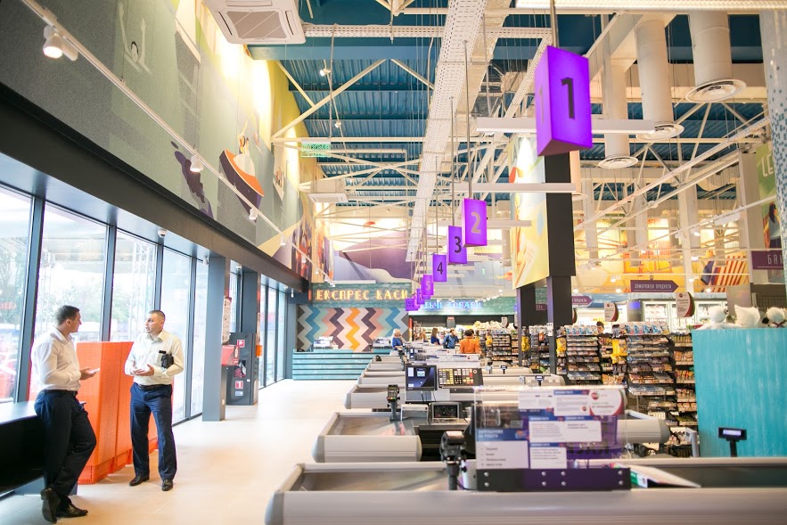 Для удобства покупателей работает 14 касс: восемь основных, четыре экспресс-кассы, отдельная касса в цветочном бутике и еще одна — в отделе кофе и чая.