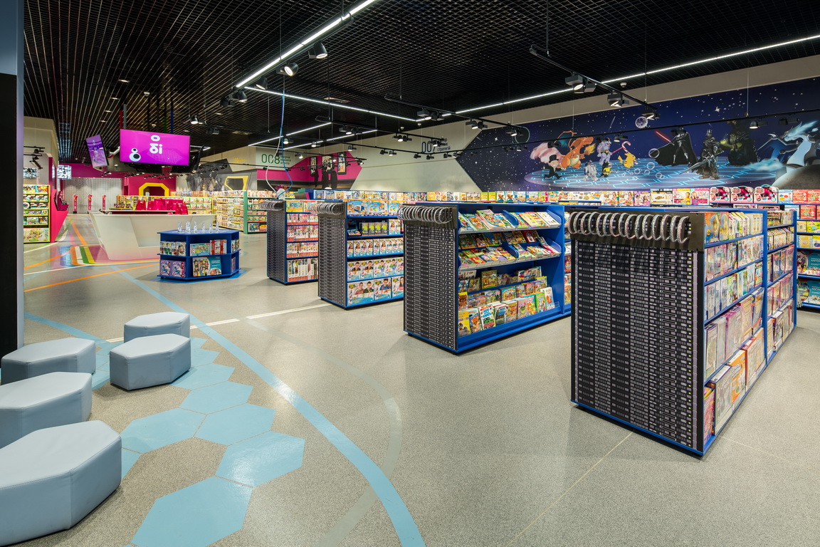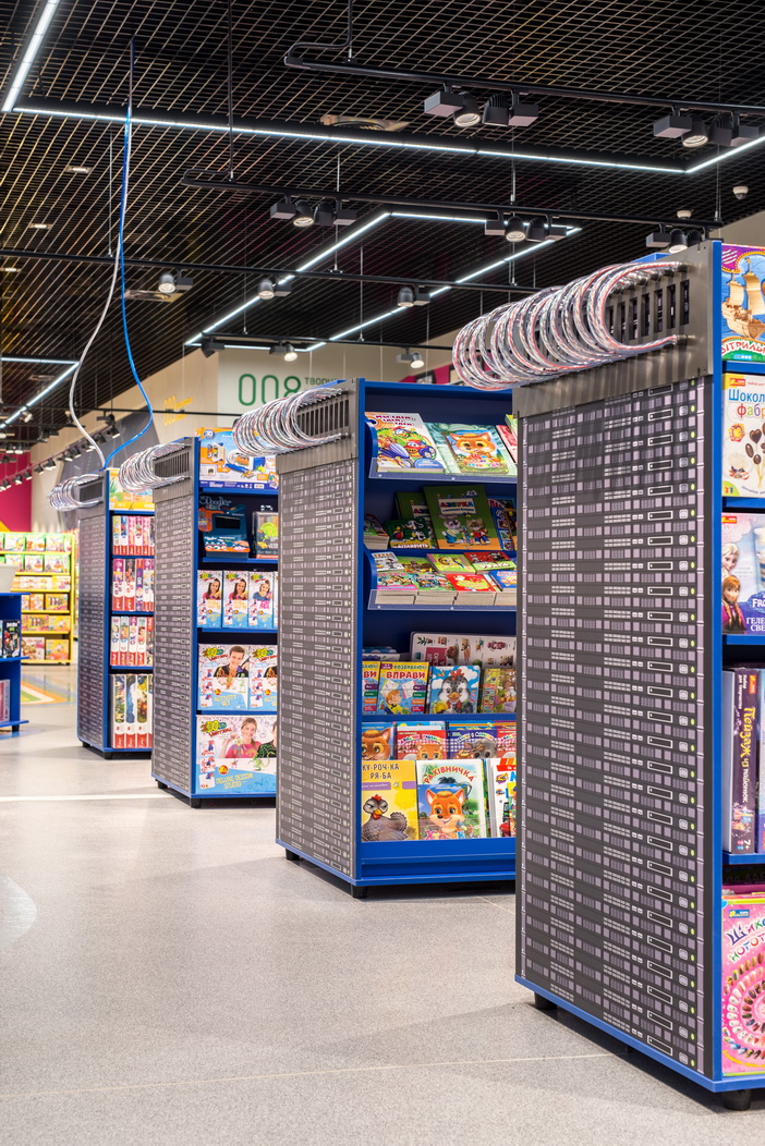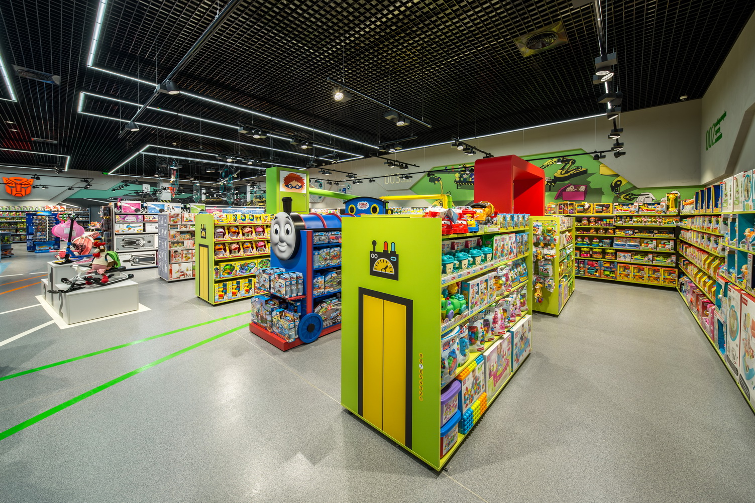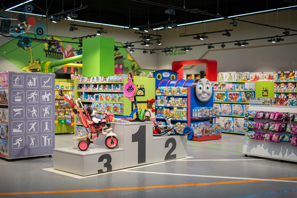 Большая по отношению к среднему формату площадь магазина позволила представить максимально полный ассортимент игрушек для любых предпочтений.