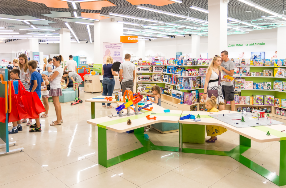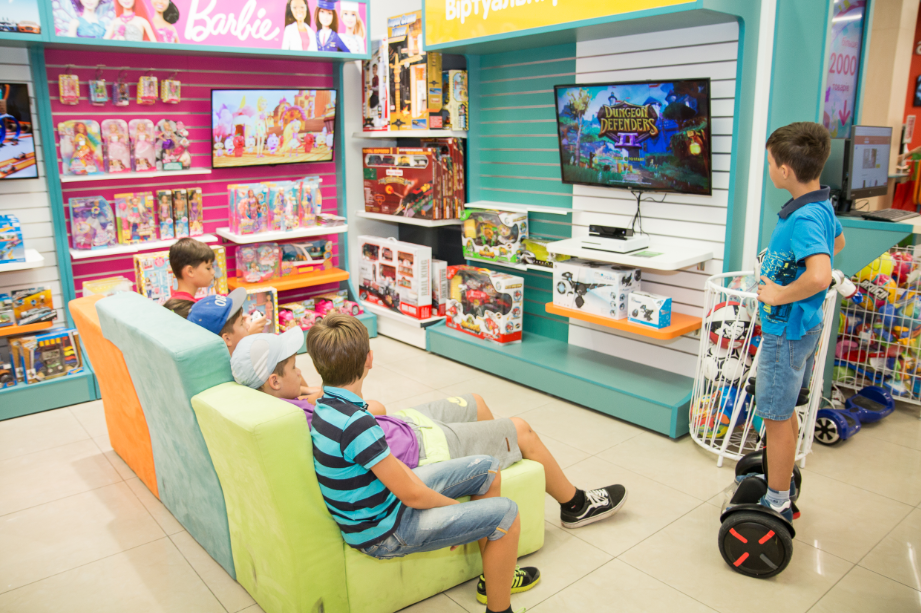 К таким зонам ритейлер относит игровые и демонстрационные столы, детскую горку и кнопки для голосования за понравившиеся игрушки, ящик для детских писем, детскую кассу, комнату мамы и ребенка, выделенные зоны консультаций для беременных и мам с грудными детьми, большое количество распакованных игрушек и товаров, которые можно использовать для игры, собирать, кататься на них и вообще делать с ними все, что приносит радость детям.