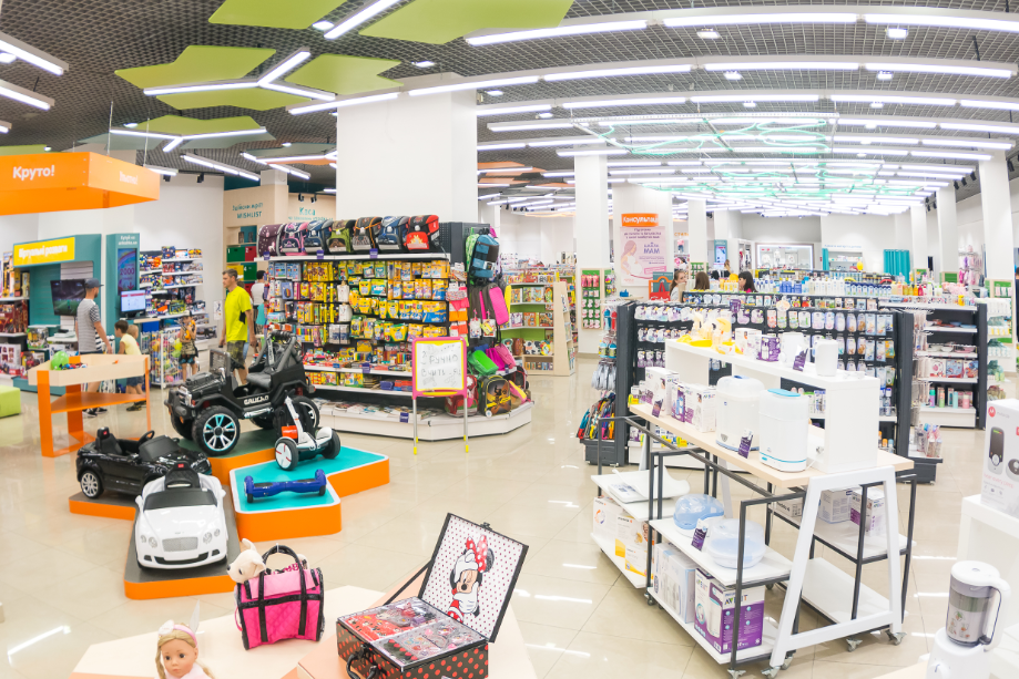 Новый формат — это прежде всего четкое зонирование зала по трем товарным категориям: Fun, Fashion, Baby Care, демонстрация со входа преимуществ каждого из трех бизнесов и наличие большого количества игровых и специальных зон.