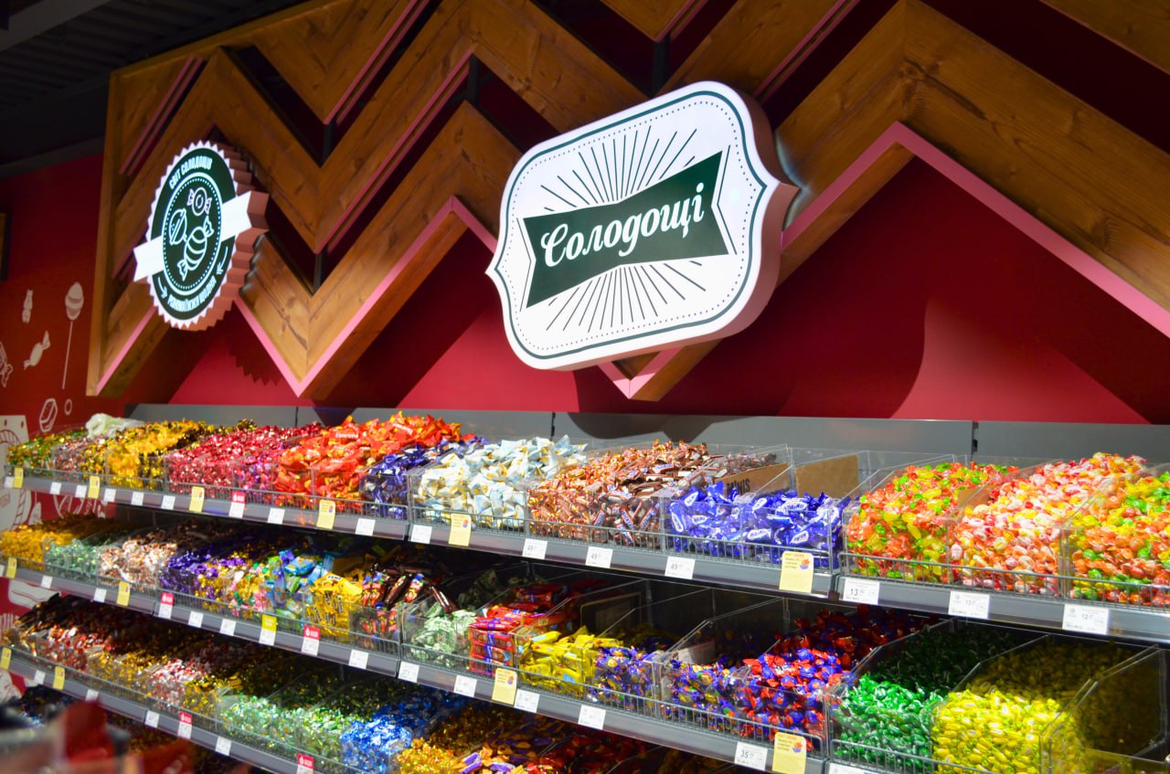 Ці елементи створюють не просто магазин, а атмосферу справжнього ринку, де є душа і тепло. Принти та холодна деколь на стінах, лайтбокси та таблички на стелажах — усе це допомагає легко орієнтуватися та робить шопінг інтуїтивно зрозумілим.