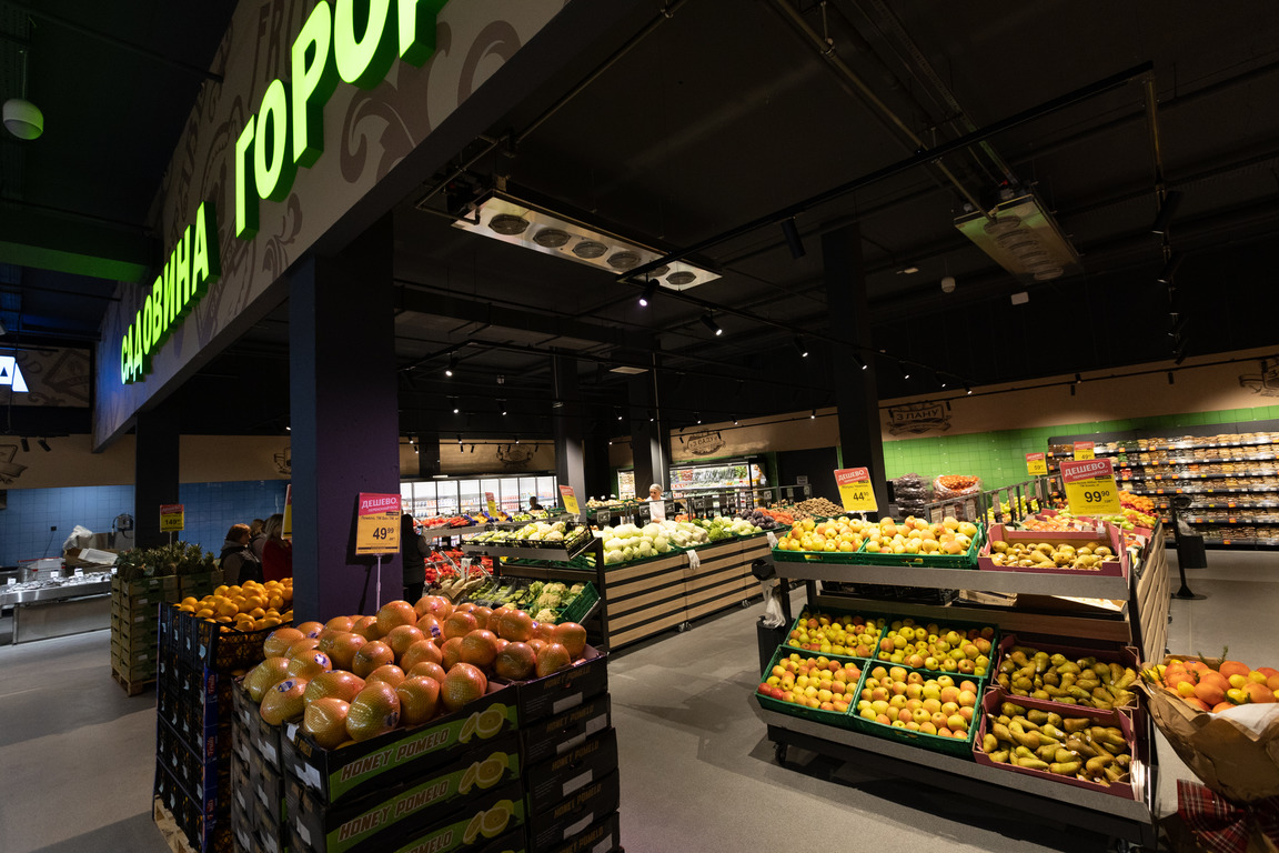 Гіпермаркет поєднує формат щоденних покупок і закупівель великими обсягами: у асортименті — продукти та товари для дому, продукція власного виробництва, імпорт і торгові марки мережі.