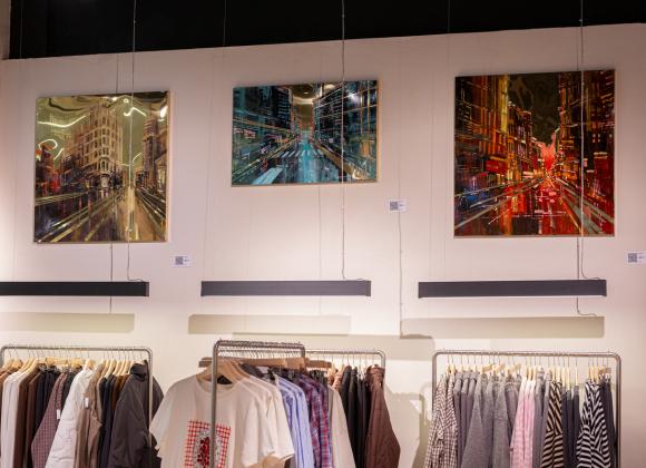 Стіни магазину прикрасили художні роботи з серії “Міста” на купольних металевих полотнах від Аліни Степанової. Вони створюють незвичні оптичні ефекти та містифікують простір.