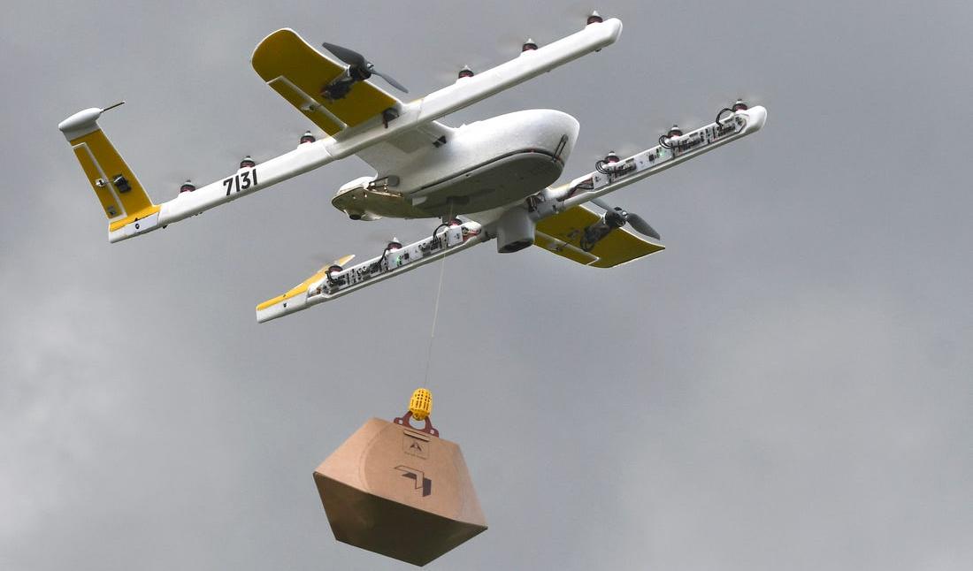 Сервис для доставки дронами Wing, который принадлежит Alphabet, работает в штате Вирджиния, а также в некоторых частях Финляндии и Австралии. Сервис соединяет покупателей и местные магазины. Чтобы оформить доставку, нужно проживать в зоне обслуживания, установить приложение и сделать заказ. Дрон забирает товар у продавца и доставляет его клиенту. Беспилотник не отдает покупки в руки. Он зависает на высоте примерно 7 метров и спускает посылку на землю с помощью специальной веревки с крючком.