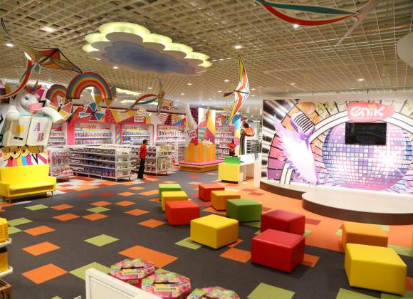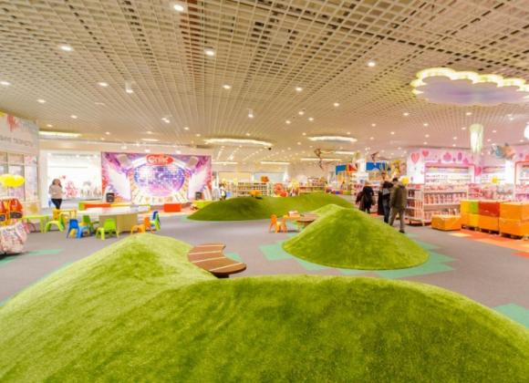 В новой торговой точке изменилось цветовое и визуальное оформление, увеличены зоны литературы, творчества, для развития и интерактивных игрушек. А также появятся новые развлекательные зоны – открытый батут, Lego и аэрохоккей. Новый формат предполагает три стиля оформления – "Граффити", "Космос", "Джунгли" – яркими голубыми, розовыми и зелеными акцентами.
