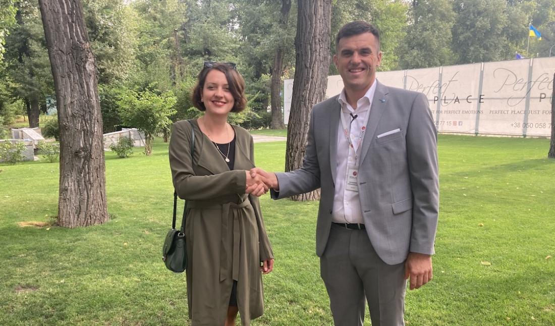 На фото: Юлия Белинская, Retailers.ua и Владимир Кличановский, "Нова Лайт"
