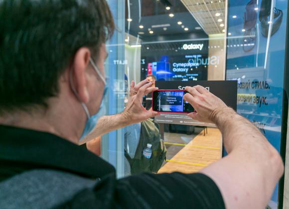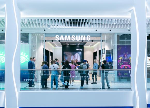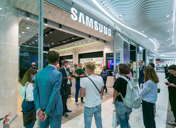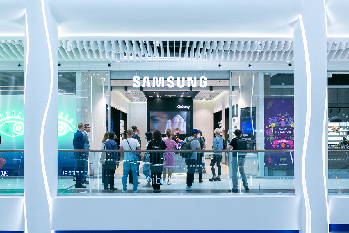 Samsung — монобрендовый магазин мирового гиганта, которым в Украине управляет компания "Протория" (входит в группу компаний MTI). Этот магазин построен по формату experience store, его основная задача – дать потенциальным покупателям возможность пощупать, попробовать гаджеты, которые в данный момент выпускает бренд. В магазине открытая выкладка, яркий контенте на экранах и отдельная точка выдачи интернет-заказов.