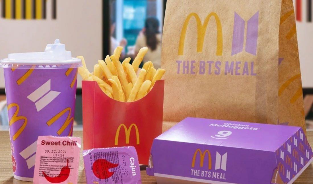 В мае компания представила BTS Meal — обед из картофеля фри, 10 куриных наггетсов, колы и новых соусов чили и каджун, разработанных совместно с BTS. А позже запустила мерч на основе кампании. Тогда только за неделю продаж компании удалось привлечь больше клиентов, чем в течение всего года, говорится в отчете Gordon Haskett Research Advisors. Посещаемость ресторанов McDonald's за первую неделю после запуска меню от поп-группы BTS выросла на 12%. Более того, меню BTS стало популярнее чем предыдущая коллаборации фаст-фуд сети с рэпером Трэвисом Скоттом, во время сотрудничества с которым, посещаемость в первую неделю увеличилась на 9%.