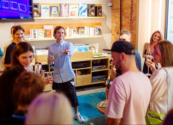 Особливо хочеться відзначити персонал шоуруму. Тут зібралась команда яскравих, веселих хлопців та дівчат з багатосторонніми інтересами від музики та серфінгу до татуювання і подорожей по всьому світу. Вони з палаючими очима розкажуть про новинки зі світу технологій і з задоволенням поставлять свої улюблені платівки.