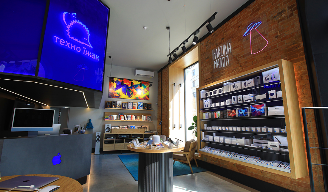 Ось як описує шоурум засновник «Техно Їжака» Олексій Гулий: «Ми хотіли відкрити щось принципово нове, чого ще не було в Україні. Тому почали розробляти проект магазину, як то кажуть, з нуля. Ми хотіли зробити «простір» у якому клієнту буде класно, цікаво та комфортно. Де він зможе побачити частку нашого світу, познайомитися з нашим “лайфстайлом”. Так, ми фанати бренду Apple і звісно тут ви зможете придбати будь-який їх товар. Але крім цього ми зробили так званий «аналоговий куточок», де представлено багато класних «справжніх, нецифрових» речей. Наприклад, книги, таких відомих світових видавництв як Taschen, про подорожі, мистецтво, фото, музику та визначних персон. Німецькі преміум блокноти nuuna, які самі по собі це витвір мистецтва, а торкатись їх це справжнє задоволення. Також разом з нашими друзями ком`юніті Kultura Zvuka ми зібрали класний селекшн вінілових платівок: від Moderat та Bicep до Radiohead та Френка Сінатри. А якщо ти ще не слухаєш вініл, то у нас можно придбати все необхідне: програвач, акустику чи підсилювач. Одним словом, тут ви знайдете подарунок на будь-який смак і нагоду. Загалом не має значення ти прийшов щось придбати, отримати інтернет-замовлення або просто поспілкуватися та послухати вініл, тобі у нас буде комфортно та цікаво. Це наш перший шоурум нового формату, другий вже будується у Одесі і далі буде ;)»