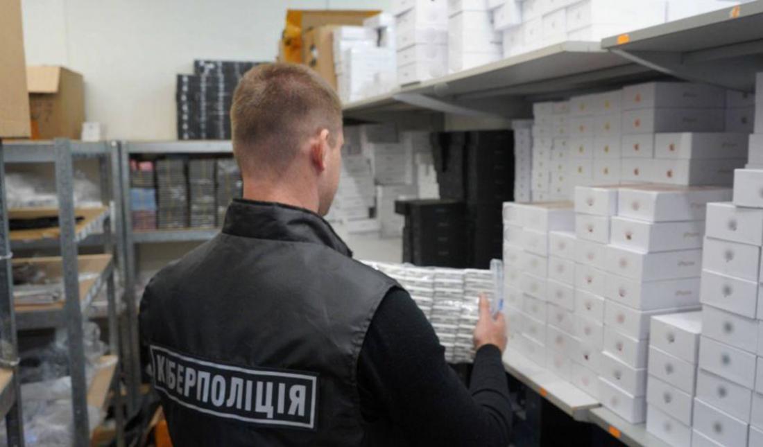 В результате обыска изъяли упакованные почтовые посылки, ноутбуки, планшеты, принтер для чеков, более ста мобильных телефонов и двух тысяч коробок к ним, 500 наушников, машинки для печати IMEI и свыше 2 млн гривен.