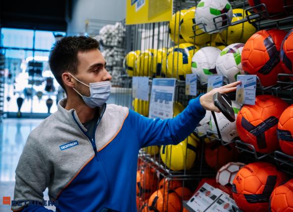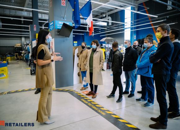 Далее гости посетили магазин спортивных товаров Decathlon. Экскурсию провела лидер по сustomer satisfaction Decathlon Ukraine Алина Короленко. 73% клиентов Decathlon – это так называемые омнишоперы, а 59% используют смартфон для офлайн-покупок. У компании единый сток, что означает, что магазины являются одновременно и складами и точками выдачи. Все товары Decathlon оборудованы RFID-метками (Radio Frequency IDentification – радиочастотная идентификация), что позволяет существенно сократить время и человеческие ресурсы на приемку товара, инвентаризацию, а также ускорить процесс расчета на кассе. Гости экскурсии смогли убедиться, что благодаря этой технологии в Decathlon работают самые быстрые кассы самообслуживания, а инвентаризация занимает считанные минуты.