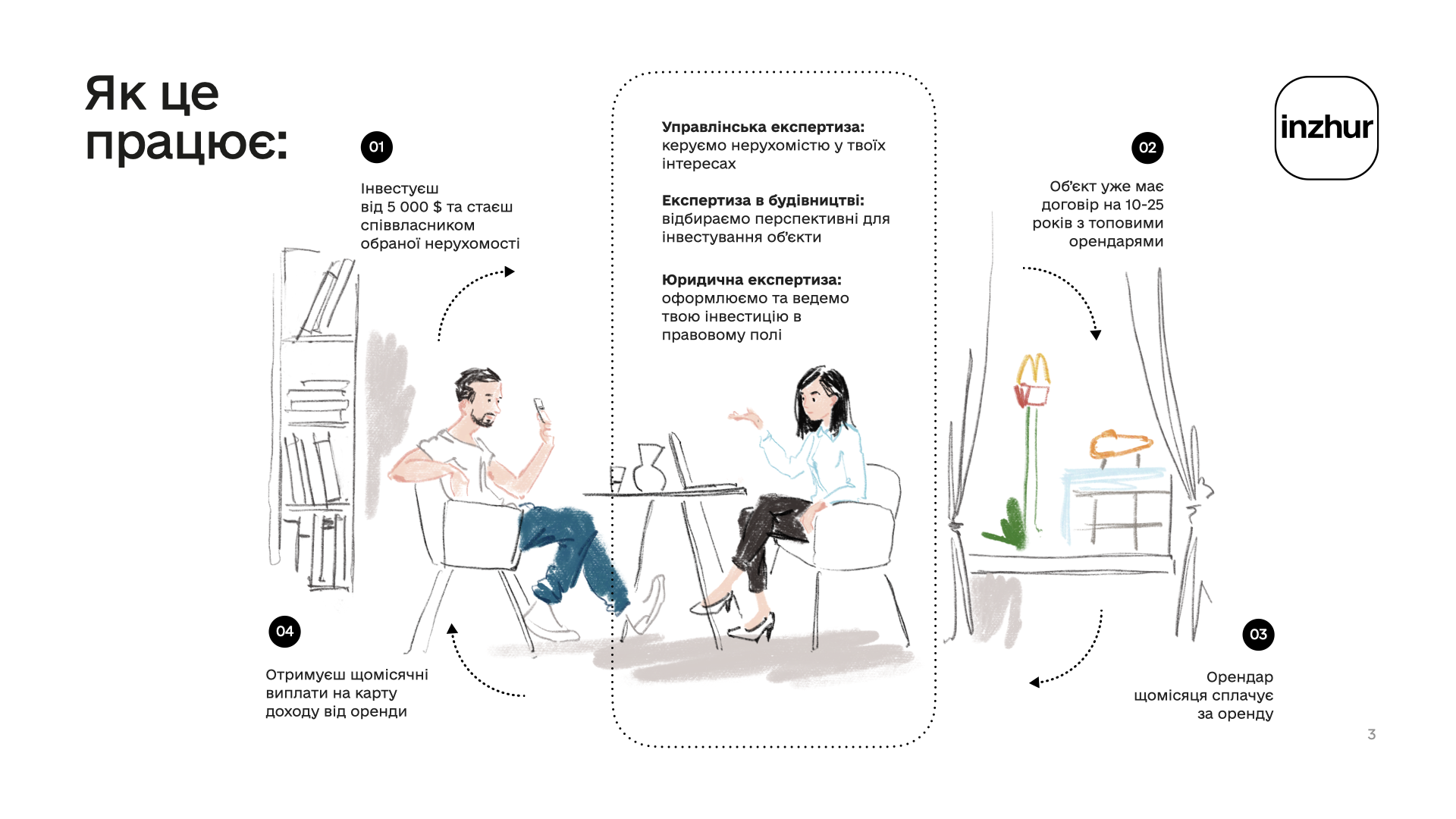 — Очікувано, найбільший інтерес до Inzhur одразу ж мали великі інвестори, які розуміють цінність такої інвестиції. Нею не потрібно займатися, вона дає стабільний дохід у доларі, адже прив’язана до оренди та виторгу магазину. Найпростішим шляхом було продати об’єкт кільком великим інвесторам і не паритися, але ми спеціально встановили верхню межу інвестиції на рівні $150 000 і вирішили битися за малого та середнього інвестора — тільки так ми побудуємо ринок і зробимо інструмент справді масовим.