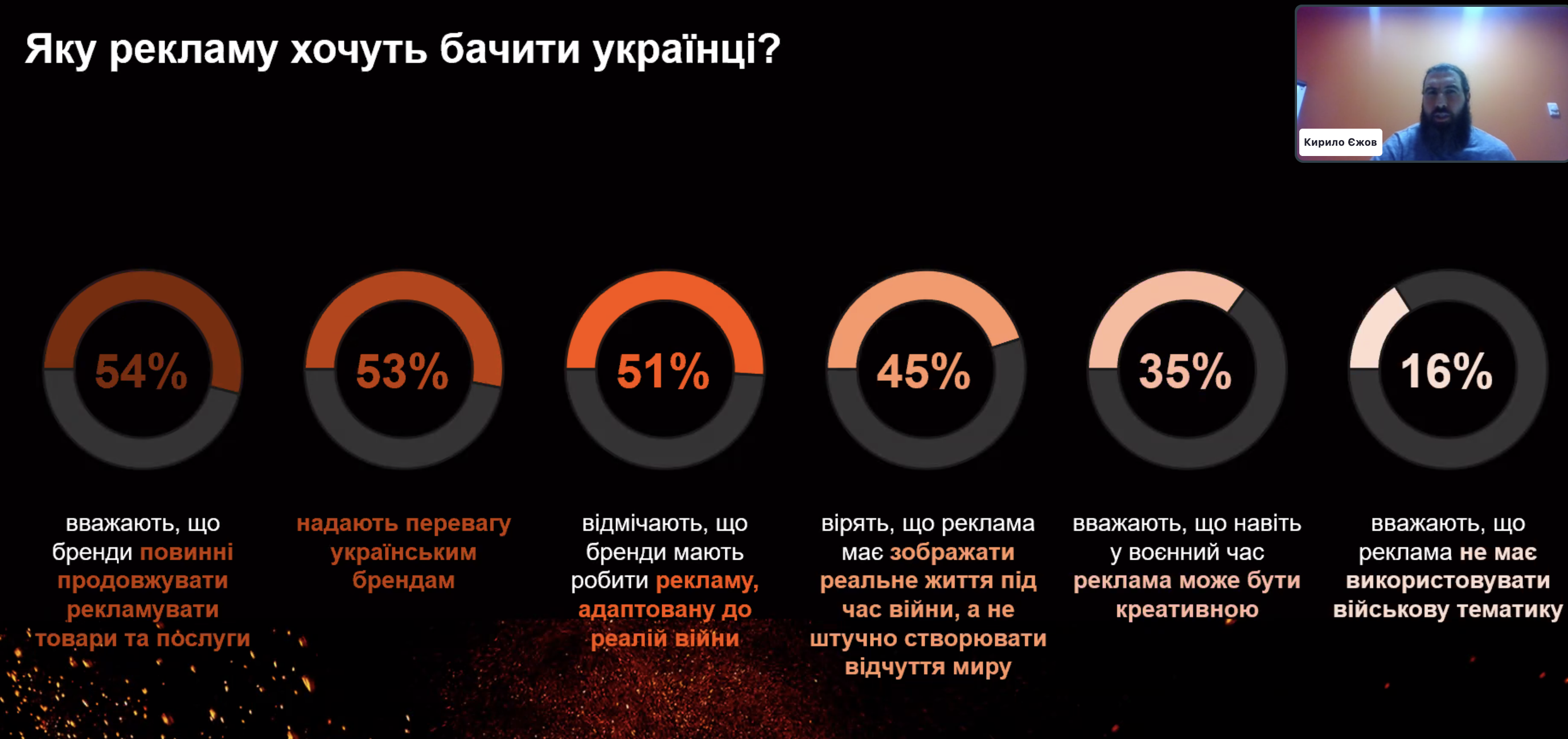72% українців вважають, що реклама має бути навіть у війну, а 81% зазначає, що бренди мають бути активними.