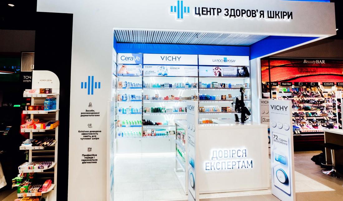 Він являє собою окремий відділ – центр здоров’я шкіри, який розміщено на базі магазину EVA стандартного формату в концепції «Жіноча енергія», яку мережа презентувала наприкінці минулого року. «Тут представлено дерматокосметику, товари для здоров’я, доглядові засоби всесвітньо відомих брендів La Roche-Posay, CeraVe, Vichy тощо», – розповів операційний директор ТОВ «РУШ» (Лінія магазинів EVA та EVA.UA) Віктор Средній.