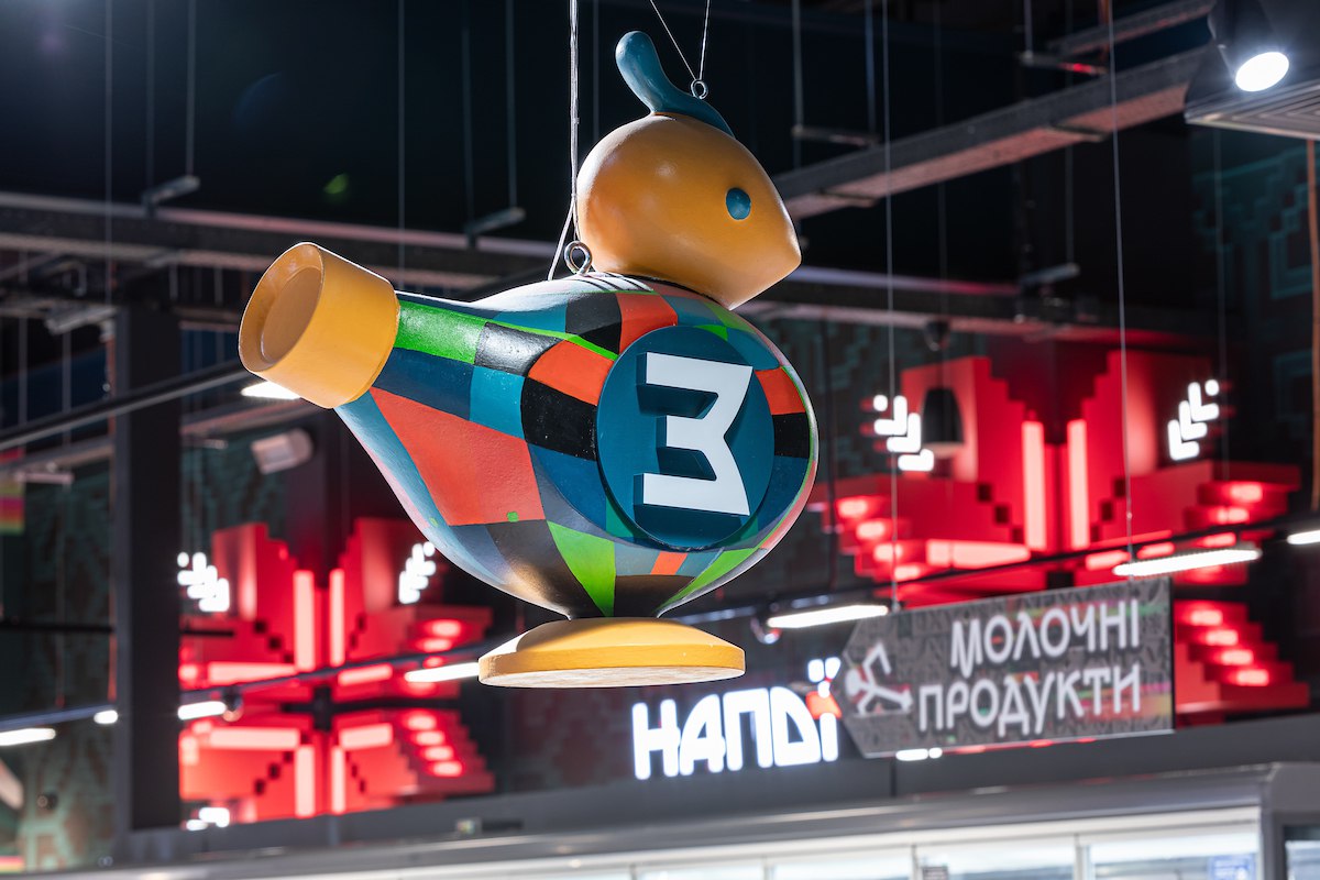 Звісно ж, окрім сакральних сенсів, в новому супермаркеті піксельні вишивки з різних регіонів України простягаються між рядів смачних страв з кулінарії. Ляльки-мотанки оберігають процеси випікання найзапашнішого хліба. А свищики контролюють процеси купівлі товарів на касах.