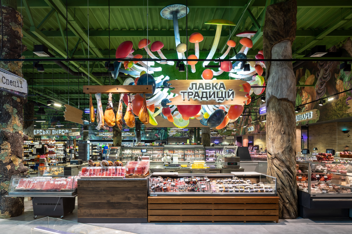 Вивіски відділів виготовлені з дощечок – яскраве нагадування про розумне споживання, яке пропагують прихильники культури «Гоблінкор». У цих відділах можна відшукати головних персонажів лісової гастроісторії «Сільпо»: випічку від «Крафтяра», м’ясо до шашлику, піцу, рибу, страви з кулінарії та найцікавіші фрукти з усього світу, відшукані чарівниками Власного імпорту.