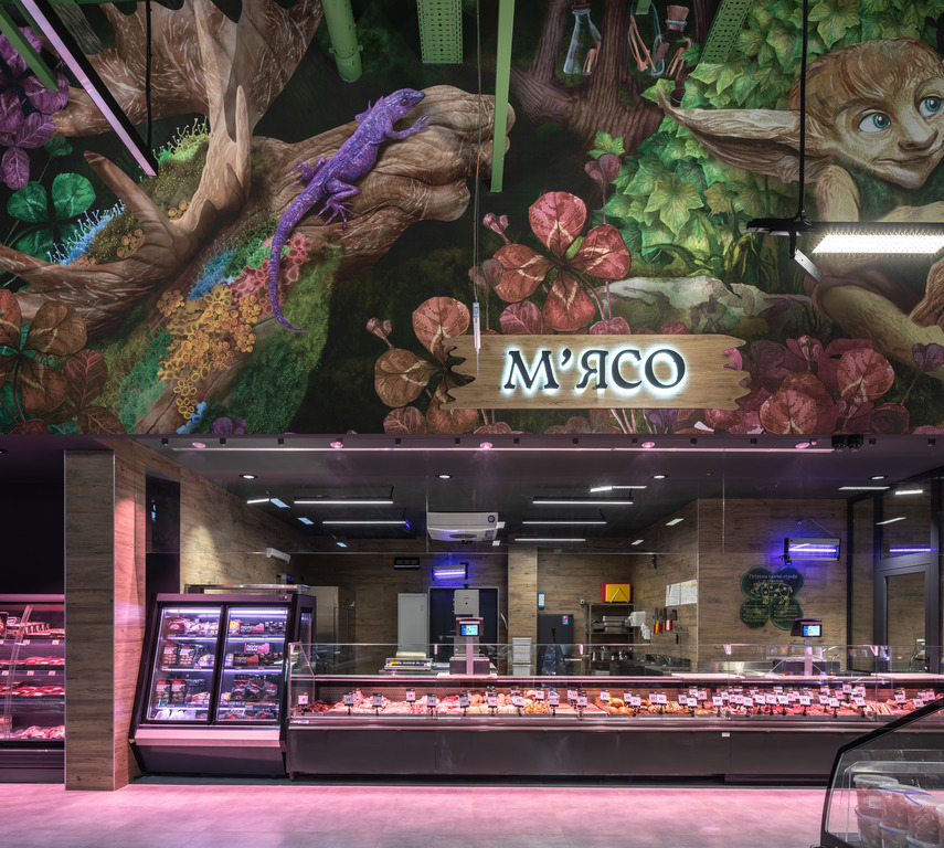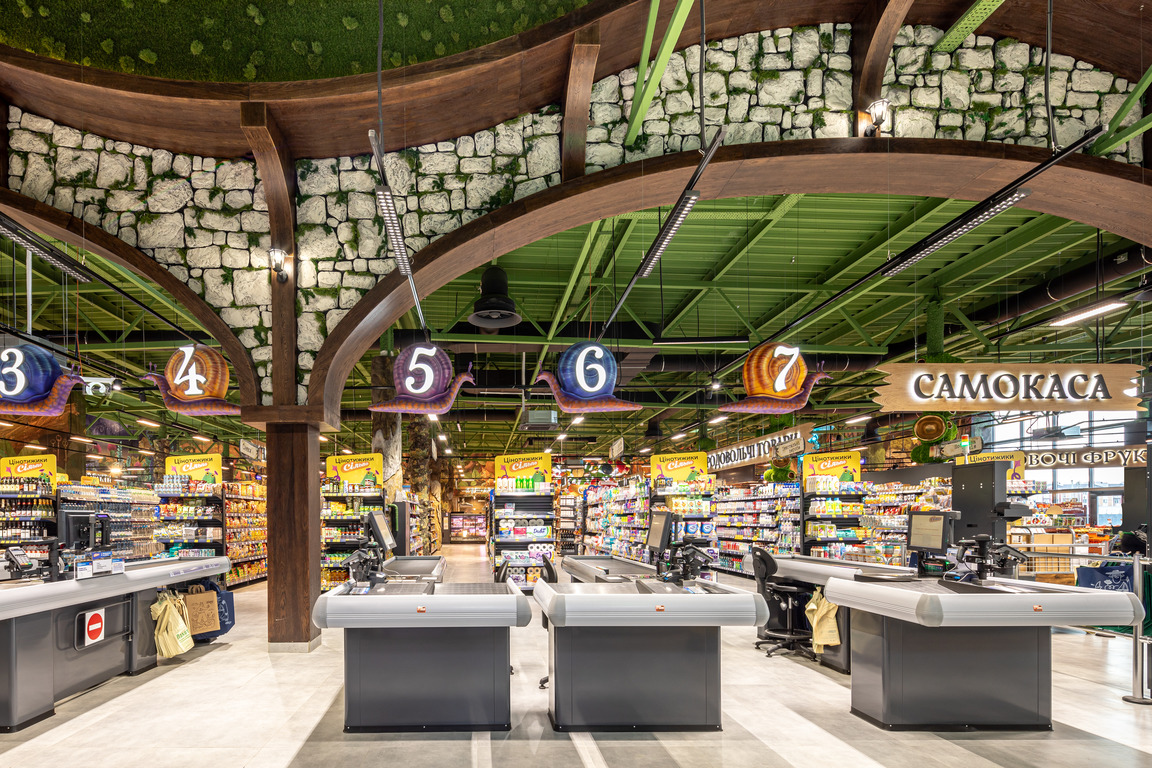 Щоб розгледіти містичних лісових істот, інтер’єр торгового залу загальною площею 1500 кв.м оформлено в природному стилі ― деревина, зелені відтінки та рослини. На шпалерах ілюстрована історія про гобліна «хранителя лісу», а колони оформлені у вигляді дерев та декоровані мохом.