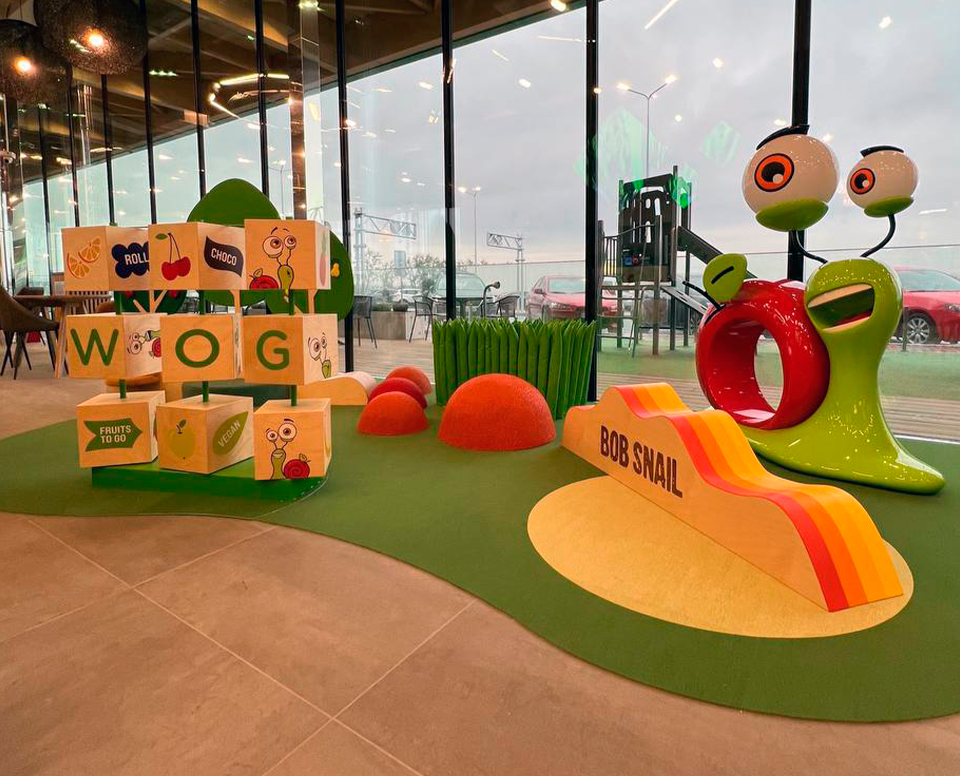 Для найменших гостей всередині АЗК спільно з виробником корисних солодощів «Равлик Боб» облаштували ігровий куточок.