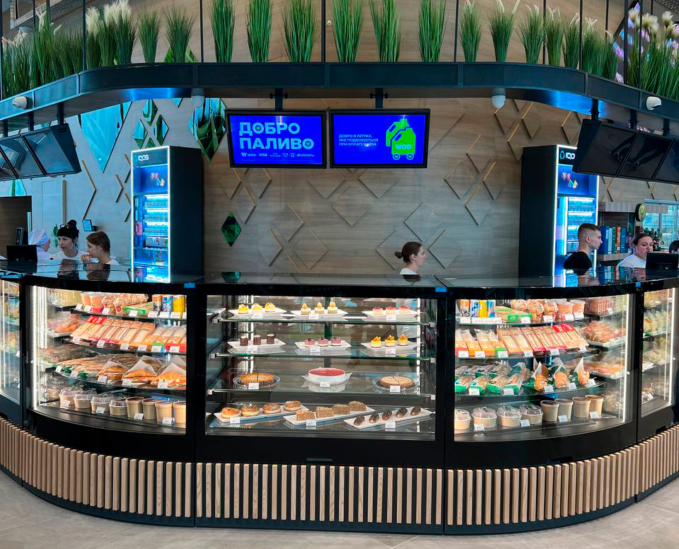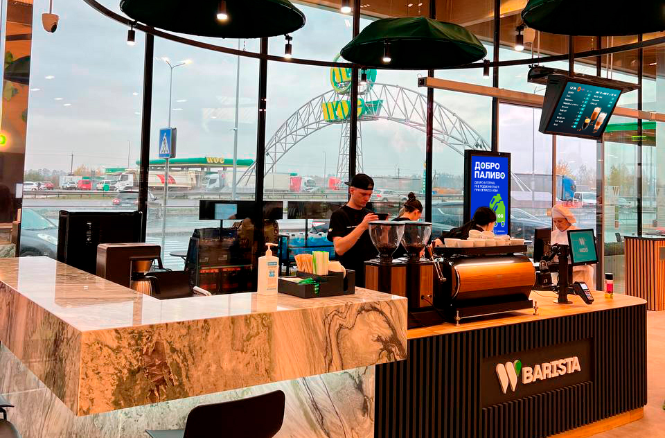 Ірина Соколовська, директор дирекції громадського харчування та Інтерсіті: «Це перший АЗК в Україні, де створено унікальний фудхол з кількома закладами харчування, холодною й теплою вітринами. Каву можна приготувати самостійно на надсучасній кавомашині Franke. Їх тут 5, що дає можливість покращити якість обслуговування та розвести трафік. Подбали й про кавоманів, для яких кава – не просто напій, а ритуал, до якого залучені професійні баристи. На окремому кавовому острові WOG Barista залюбки зварять смачні кавові напої. На вибір гостю доступно два види зерна: 100% арабіка та кава без кофеїну, а також чотири види молока: класичне чи безлактозне, або ж рослинне – кокосове чи мигдалеве. Смак кави доповнить вишукана лінійка десертів, серед яких є корисні смаколики без цукру та глютену, а також класичні улюблені ласощі».
