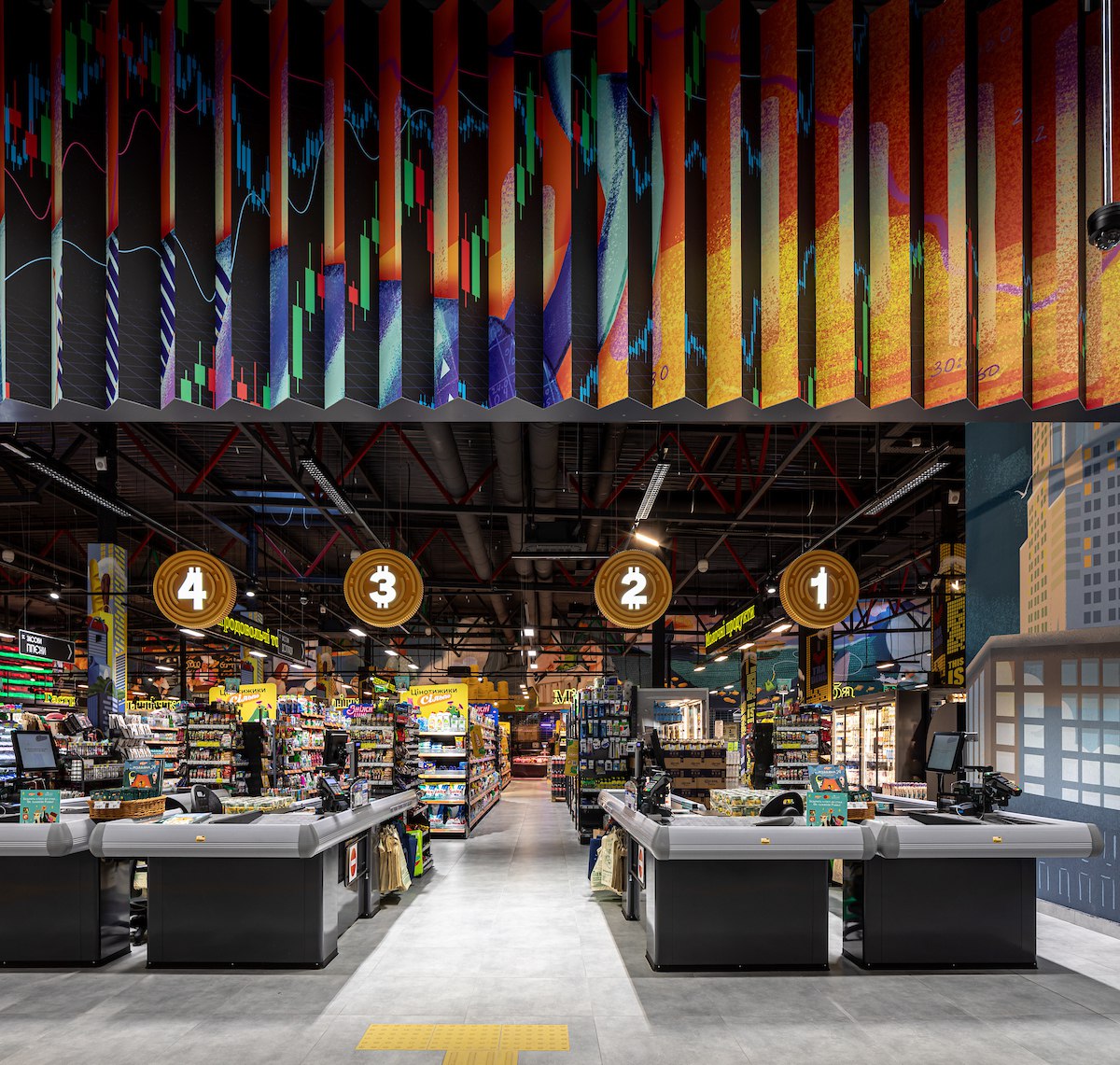 Команда «Сільпо» присвятила стиль супермаркету біржі. Купувати чи продавати? Бик чи ведмідь? Натхнені атмосферою світу, де панує шалена енергетика та свої закони, «Сільпо» поєднало у оформленні магазину дві епохи розвитку біржових торгів, починаючи з галасливої паперової до цифрової з комп'ютерами та криптовалютами. Колони у магазині оформлені у вигляді хмарочосів з трейдерськими плакатами, а шлях до товарів гостям вкажуть навігаційні стрілки з назвами вулиць.