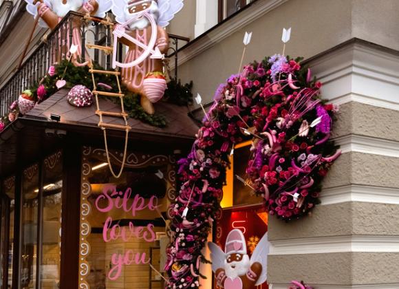 Мережа «Сільпо» до Дня закоханих перетворила вітрини та фасади двох супермаркетів на валентинки