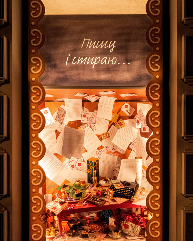 Кожен елемент артвітрин розповідає свою неймовірну історію прекрасних почуттів.