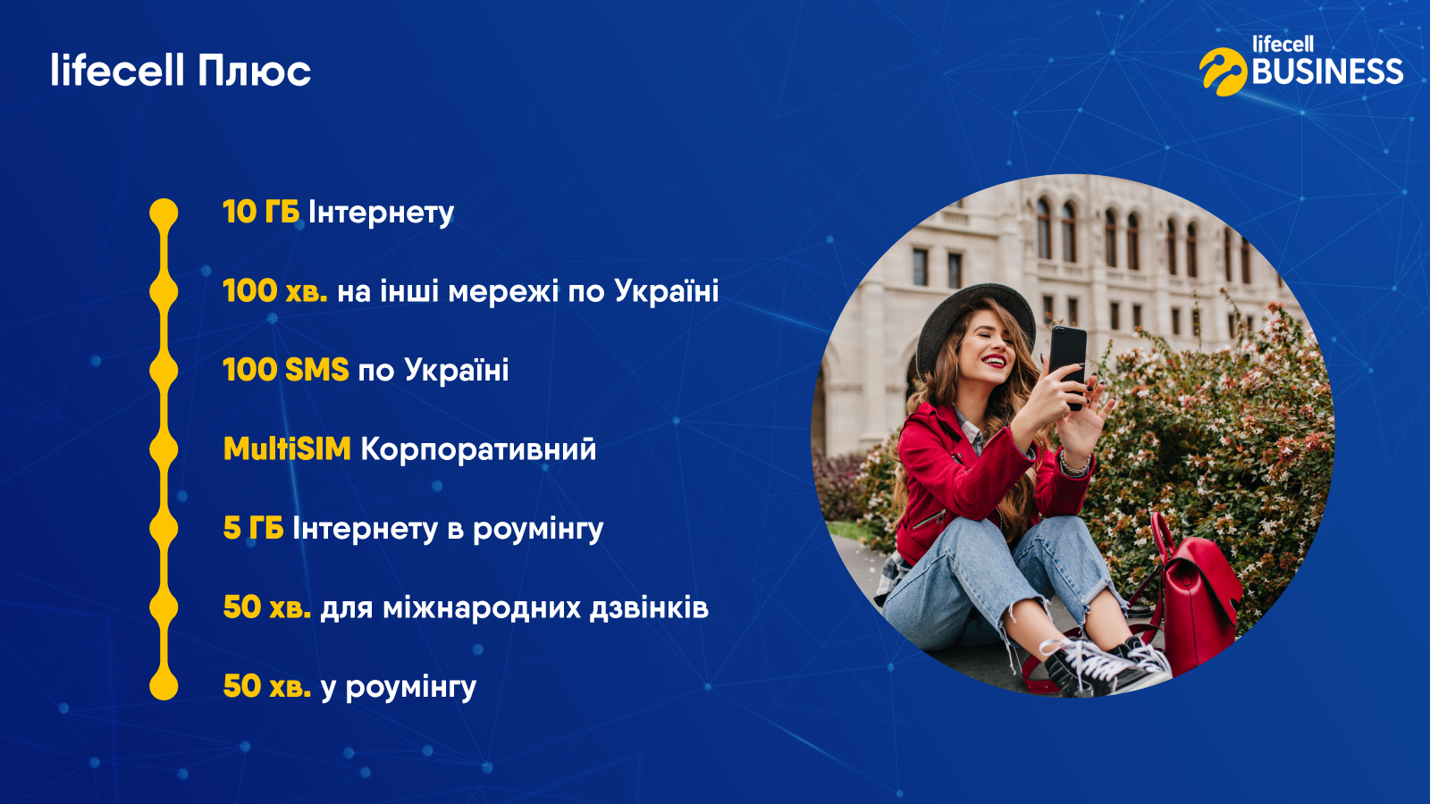 Нещодавно ми також запустили лінійку нових тарифних планів для корпоративних клієнтів. Так бізнес може оптимізувати бюджет і заощадити. Зокрема — через перенесення мобільних номерів від інших операторів у мережу lifecell, адже для таких клієнтів у нас діють спеціальні, більш вигідні умови. Додатково в нових тарифних планах є послуга lifecell Плюс, яка дозволяє обрати 2 опції до свого тарифу в рахунок сплаченої абонентської плати.