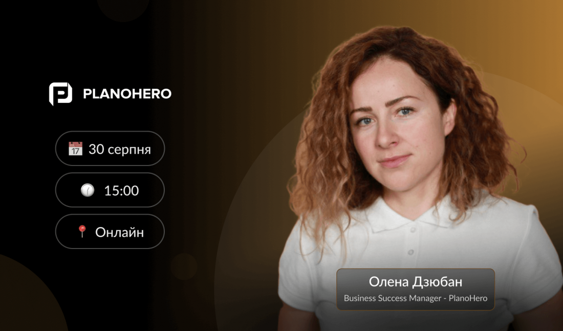 Бонуси: Учасники вебінару отримають знижку на підписку на сервіс PlanoHero, безкоштовну інтеграцію та додаток у подарунок.