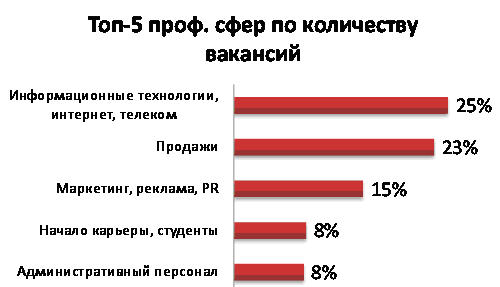 Работодатели наиболее часто искали программистов, специалистов по продажам, маркетологов, молодых специалистов и административный персонал.