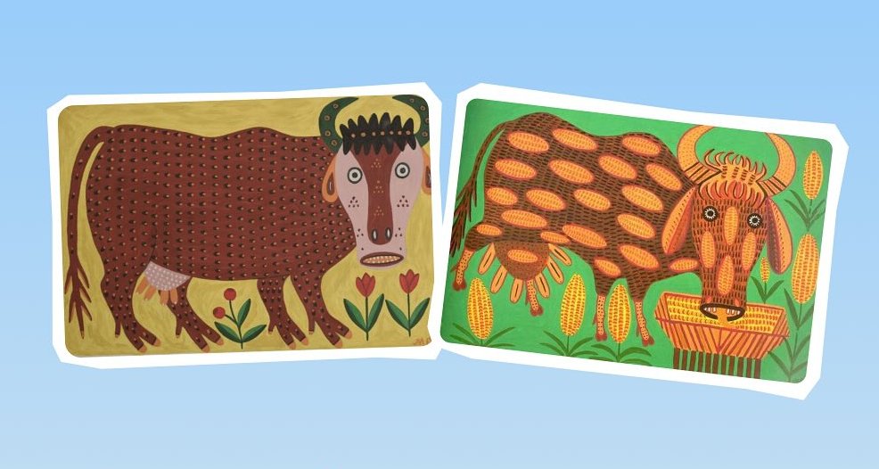 "Для багатьох людей творчість Марії Примаченко передусім асоціюється з фантастичними звірами та квітами. Та серед цих образів є й ті, у яких відчувається майже документальна правда. Корова саме одна з таких істот. У тому, як вона зображена, відчувається тепло і спокій", — каже вона.