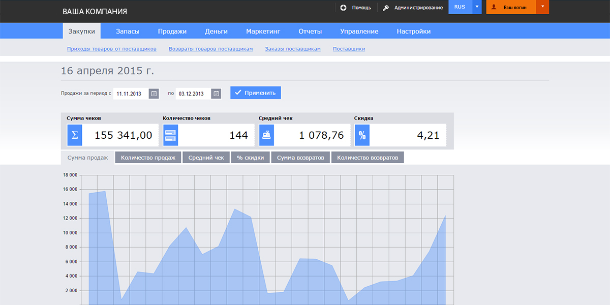 С помощью облачного сервиса можно управлять запасами, закупками, ценообразованием, товарной номенклатурой, вести клиентскую базу и программы лояльности, маркетинговые акции и делать отчеты. Продажи и возвраты осуществляются через отдельное кассовое приложение workabox, которое работает на ПК и планшетах на Windows. Каждый пользователь в системе имеет свой логин, пароль и набор прав на доступ к данным.
