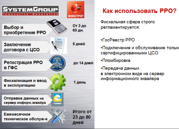 2) подписание договора с центром сервисного обслуживания — до 5 дней. Со списком производителей РРО, сертифицированных налоговой, можно ознакомиться на сайте;