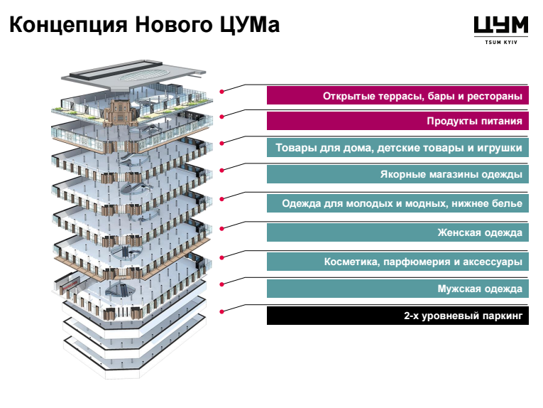 Компания «Эста-холдинг» обещает открыть киевский ЦУМ весной 2016 года. ЦУМ будет работать в формате универмага, который еще нигде в Украине не представлен. Все компании будут работать под брендом ЦУМа, а не под своей вывеской. Это будут не отдельные магазины, а брендовые зоны с единой кассой. Что о новом формате думают украинские ритейлеры