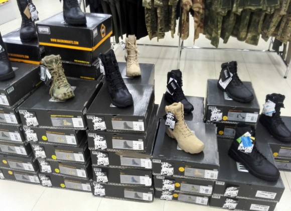 — 50% было год назад, на сегодня — 20–30%. Целевые покупки от организаций, занимающихся обеспечением солдат, сейчас прекратились. Мы продаем импортные, достаточно дорогие бренды. Это более качественная обувь, а для военных сейчас закупают то, что производится в Украине. Качество хуже, но и цена в три раза ниже. К примеру, украинская обувь стоит 500–700 грн за пару, а та, которую закупают за границей для солдат, — $100–200. Полтора года назад не было украинского производства, тогда закупали все, что могли купить, в том числе и у нас. Сейчас много цехов, которые шьют обувь, жилеты, форму.