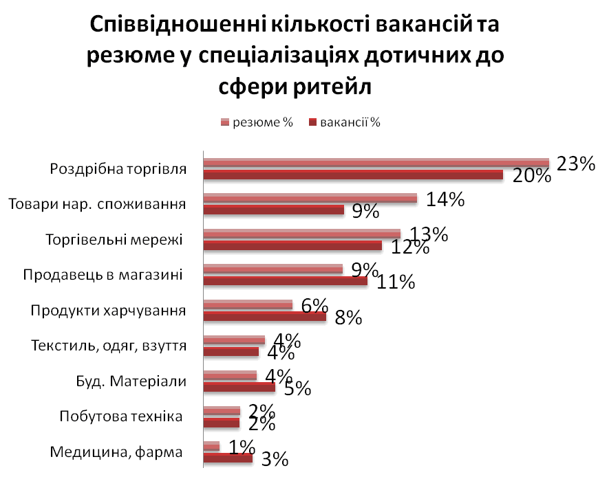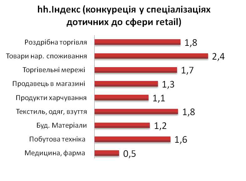 По данным международного кадрового портала «НeadHunter Украина», в среднем на одну вакансию ритейлера приходится два соискателя