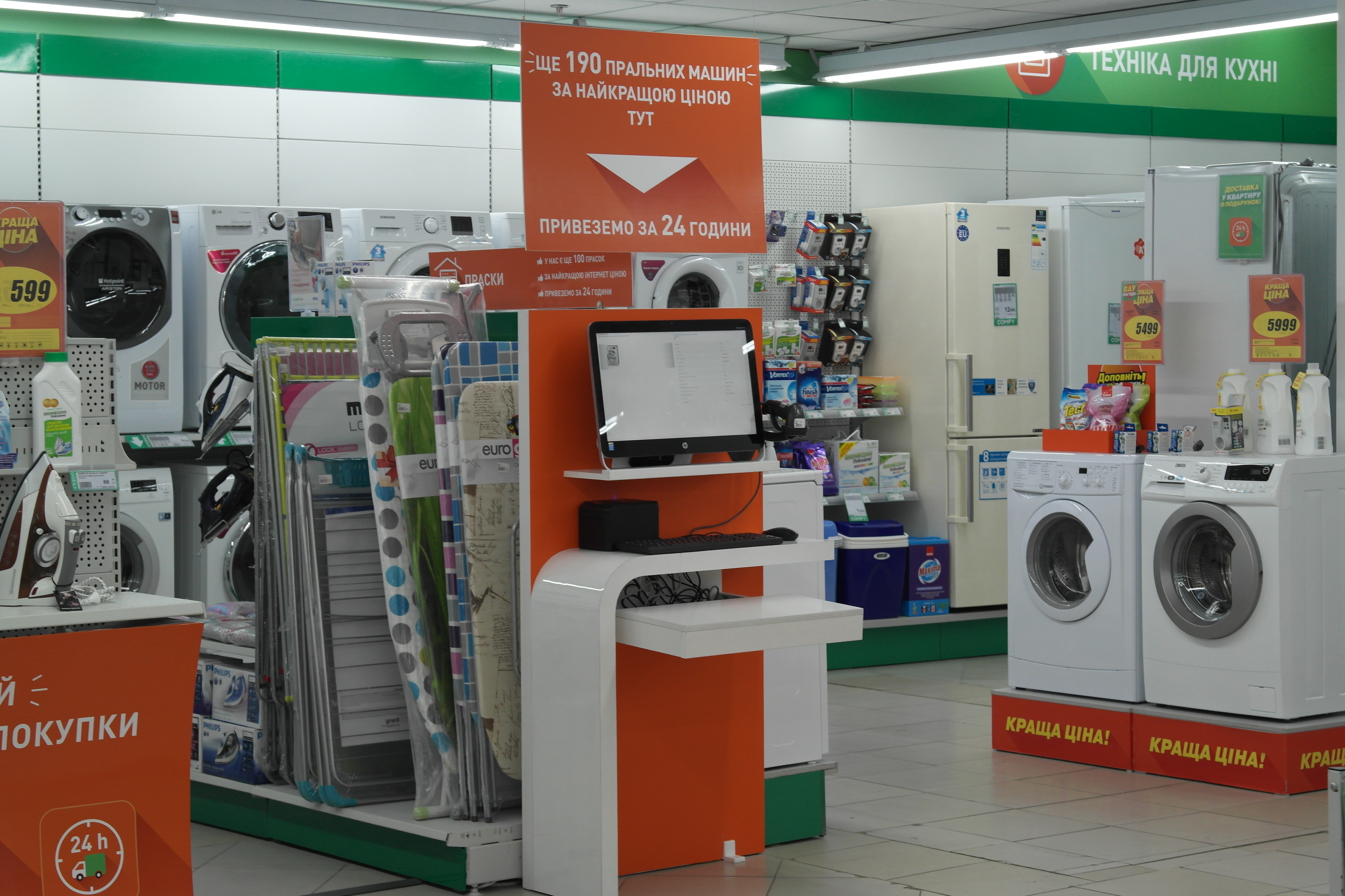 Самборский «Фокстрот» имеет общую площадь 700 кв. м, торговую — 550 кв. м и вмещает ассортимент почти из 2 500 наименований товара. Но если покупатель желает получить товар, который не представлен на полке магазина, он может заказать его через интернет прямо в магазине, выбрав из более чем 12 000 товарных позиций.