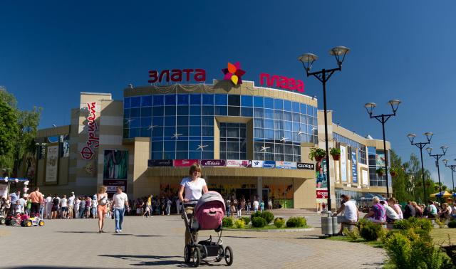/Общая площадь ТЦ «Злата Плаза» составляет около 20 000 кв. м, арендная около 13 000 кв. м. Якорными операторами являются: ресторан быстрого питания «МакДональдс», продуктовый супермаркет «Фуршет», детский развлекательный центр «Леопарк», «Ковзанка» на площади около ТЦ (летом-роллердром, зимой-каток). В торговом центре представлены около 150 магазинов и более 10 заведений питания./