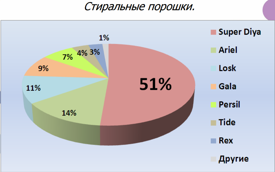 Торговые марки private label занимают лидирующие позиции в своей категории и опережают мировые бренды. Среди порошков лидером является собственная торговая марка Superdiya с долей 51%, для сравнения: Ariel — 14%, Losk — 11%. В жидких средствах для стирки СТМ Glanzen занимает 47%, в то время как Ariel — 21%, Perwoll — 14%.