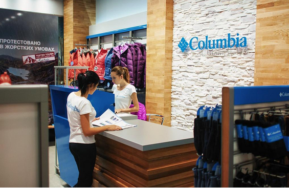 /Columbia Sportswear Company — американская компания, которая производит и продает одежду для активного отдыха (outdoor). В настоящее время одежду и обувь Columbia можно приобрести более чем в 300 магазинах России, Беларуси, Украины, Казахстана, среди них — магазины торговой сети «Спортмастер», крупнейшие универмаги и спортивные магазины./