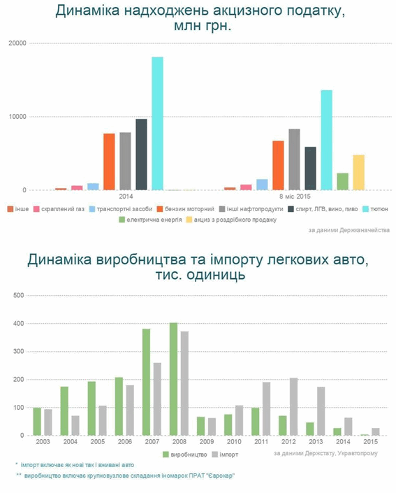 Экономисты отмечают, что из всех платежей именно акциз наиболее существенно увеличивает цену иномарки при растаможивании, тем самым создавая значительный ценовой «люфт» для местных производителей. При этом подчеркивают, что динамика авторынка в 2003–2015 годах ярко демонстрирует, что ограничение конкурентоспособного и качественного импорта отнюдь не улучшает позиций автопрома.