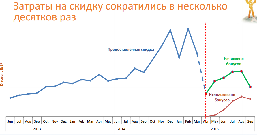 - скидка оставалась, но клиентам предлагали перейти на бонусы;