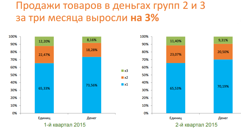 Новая система лояльности положительно отразилась на товарообороте. Продажи товаров, при покупке которых пампики удваивались (2-я группа) и утраивались (3-я группа), за три месяца второго квартала выросли на 3% по сравнению с первым кварталом.
