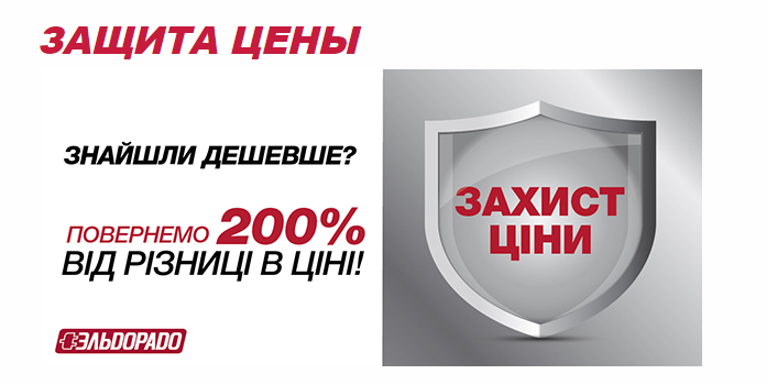 В сети "Эльдорадо" с 25 сентября 2014 стартовала акция «Защита цены». Участник акции, который совершил покупку в магазине "Эльдорадо и в течение 7 дней нашел в другом магазине (у конкурента) этот товар с ценой ниже, имеет возможность получить поощрение в виде 200% разницы между ценой покупки и найденной, более низкой ценой. Для этого необходимо заполнить бланк заявки на получение 200% разницы в цене и прислать в "Эльдорадо".