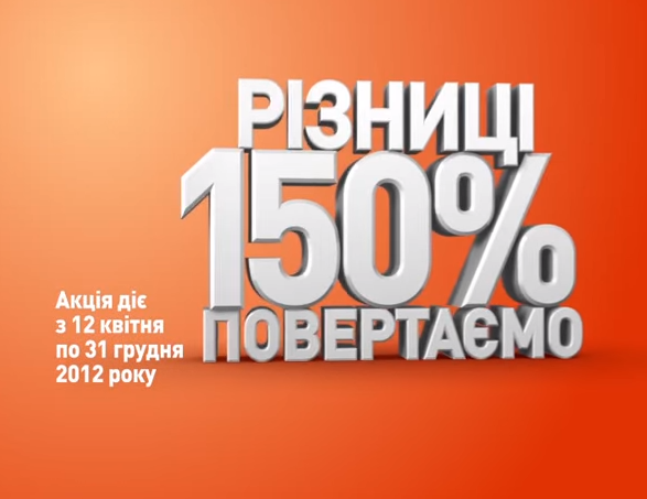Мы возвращаем 150% разницы цены, если вы найдете товар дешевле, чем в Фокстрот. Сеть «Фокстрот. Техника для дома» в июле 2012 запустила программу «Защита цены». Главная особенность акции - если потребитель приобрел технику в «Фокстроте» и нашел аналогичный товар в другом розничном магазине, на который распространяет действие акция, дешевле, он имеет право получить 150% от разницы стоимости товаров в качестве подарочной карты с указанной суммой.