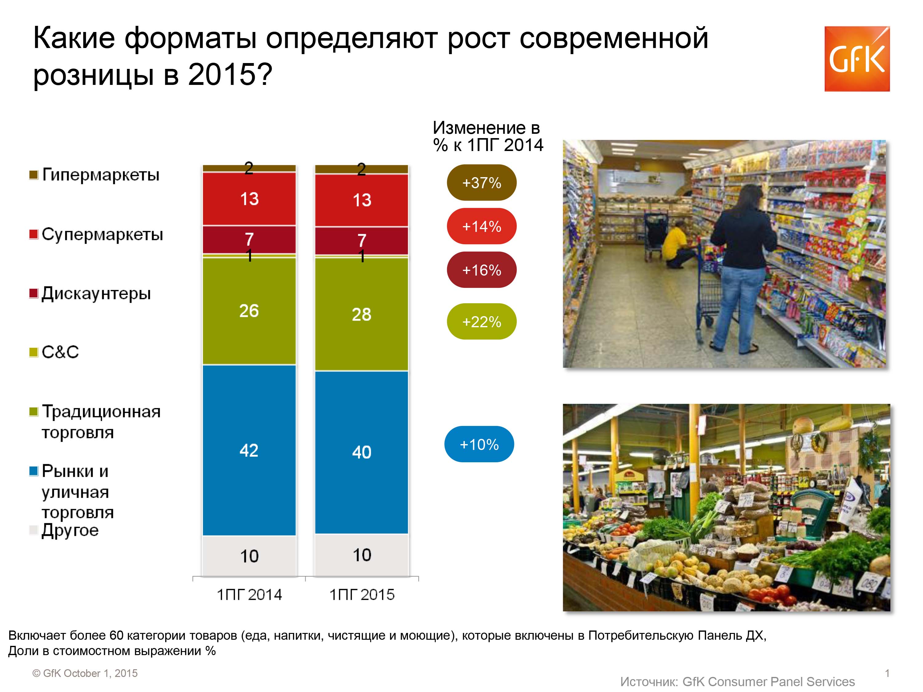 Кризис кардинально не изменил предпочтения покупателей при выборе торговых каналов. Хотя рынки и уличная торговля все еще занимают самую значимую долю в наших покупках, динамика развития этого канала остается негативной. Современные форматы продолжают расти
