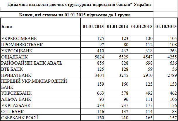 «ПриватБанк», по данным НБУ, сократил число отделений с 2 910 по состоянию на начало года до 2 789 на 1 октября. Ощадбанк сократил количество своих отделений на 292, что составляет около 7% от их общего числа.
