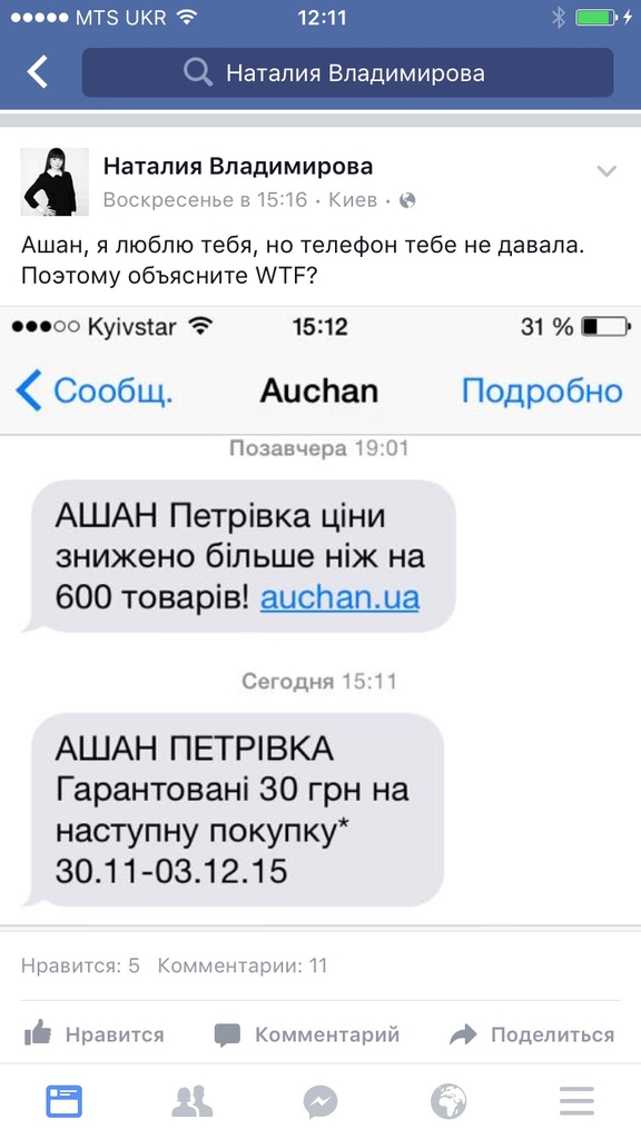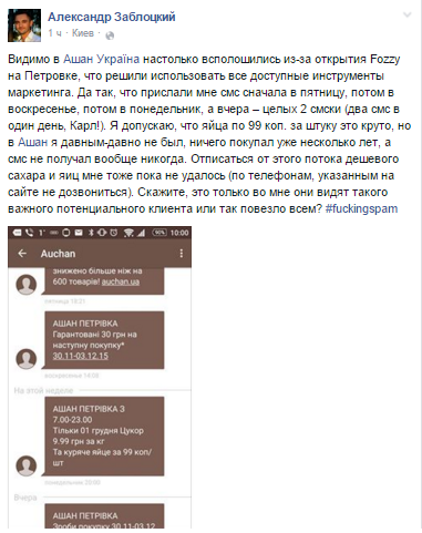 В войне с конкурентом все средства хороши. Пользователи Facebook обсуждают навязчивую СМС-рассылку от «Ашана», на которую они не подписывались