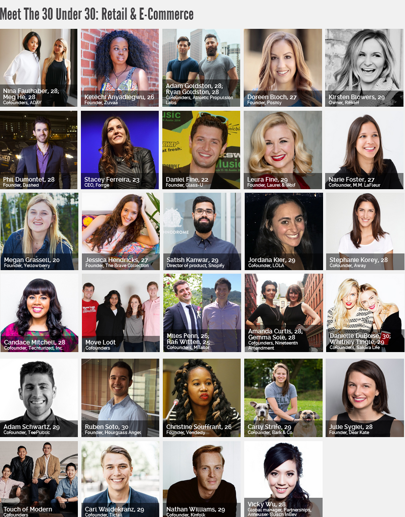 Больше половины (57%) предпринимателей в списке — женщины. Самой молодой представительницей ритейла и e-commerce, попавшей в рейтинг, стала двадцатилетняя Меган Грасселл — создатель бренда нижнего белья для подростков Yellowberry.
