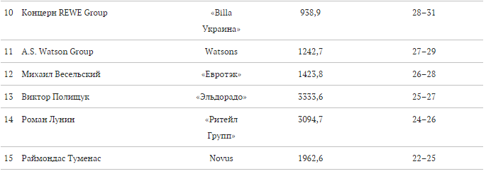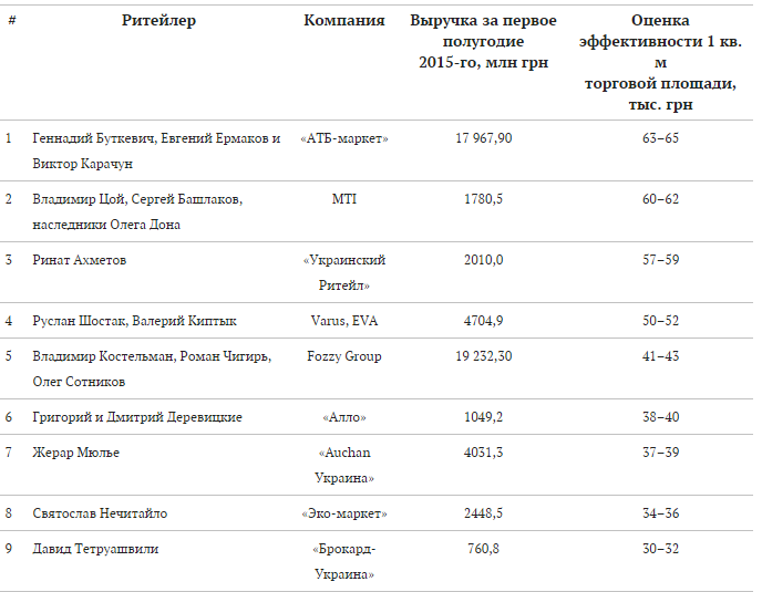 Рейтинг самых успешных ритейлеров — ранжированный список собственников украинских торговых сетей. При расчете учитывалась общая и торговая площади сети. Итоговые места в списке распределены с учетом эффективности квадратного метра торговой площади (отношение выручки к площади сети). В случае если компания управляет несколькими брендами торговых сетей, показатели суммировались. При оценке эффективности выручка торговых сетей от онлайн-продаж не учитывалась. При подсчете использовалась информация, полученная от компаний, консалтинговых агентств, а также на основании данных из открытых источников информации.